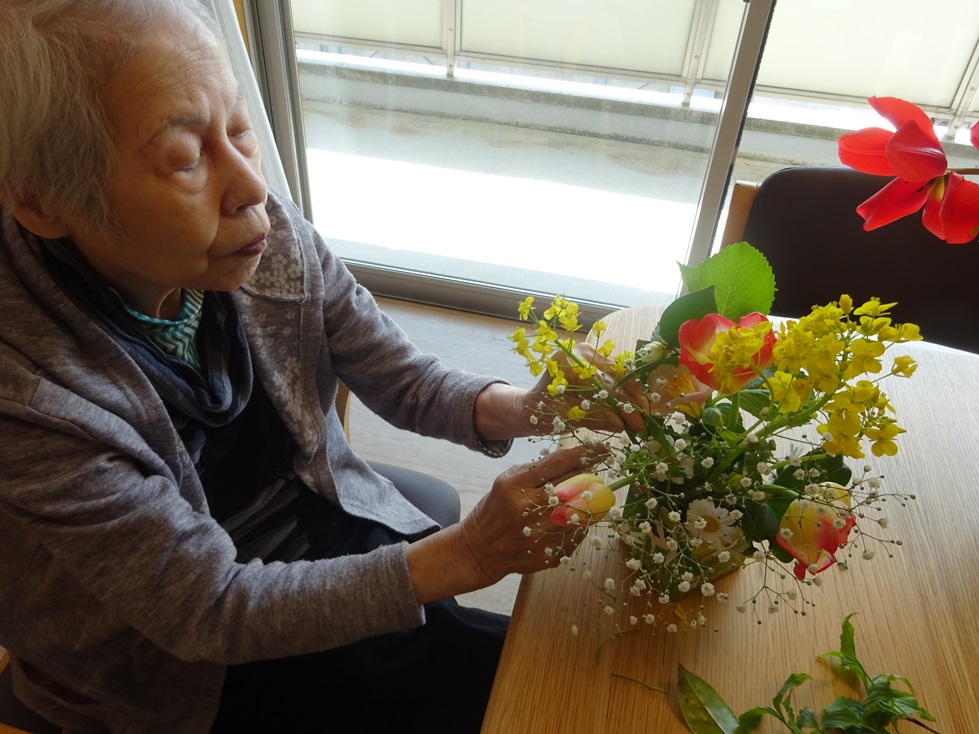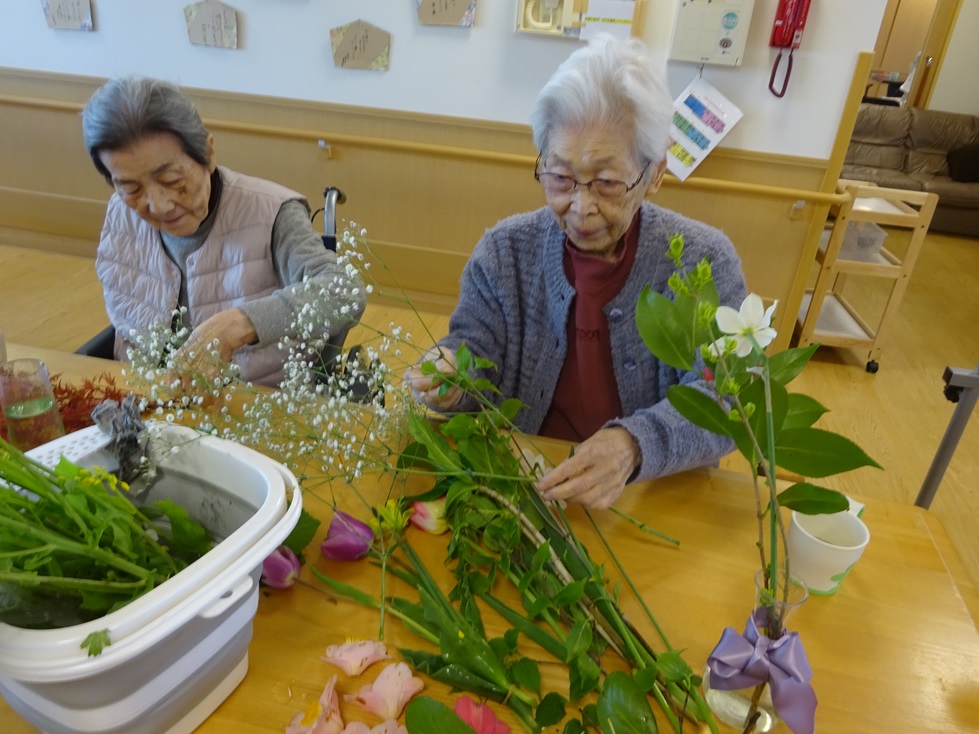 そよかぜホーム西3階ユニットです。お花が大好きな3階ユニットのご利用者様と一緒に生け花をしました(*’ω’*)