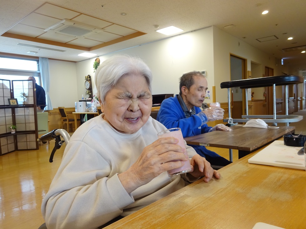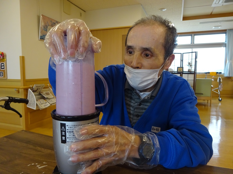 今日は、スムージー作りをしました。材料はイチゴ・バナナ・ヨーグルト・