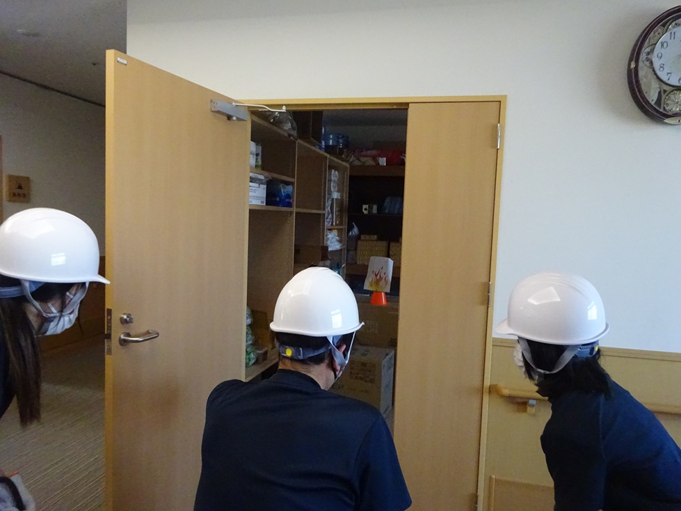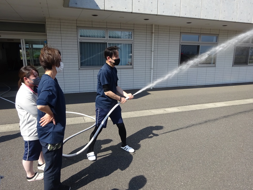5月14日(水)に消防避難訓練を行いました。今回の訓練にあたって担当する職員には事前に訓練時の動きを伝え入念に練習をしていましたが、いざ訓練開始となると火元を見つけ、初期消火を行い、避難誘導に至るなかで練習した動きとは異なり「自分でもなぜああいう動きをしたのか分からない。サイレンが鳴り響く中で、とても緊張した」と驚いた様子でした。