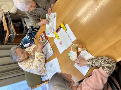 本日はご利用者様の日常のひとコマをご紹介したいと思います!ゆったりとした余暇の時間を利用して、ぬり絵を楽しまれる方、静かに読書をされる方、新聞を丁寧に読まれる方、それぞれ皆さまがご自身のペースで、心安らぐひとときを過ごされています。