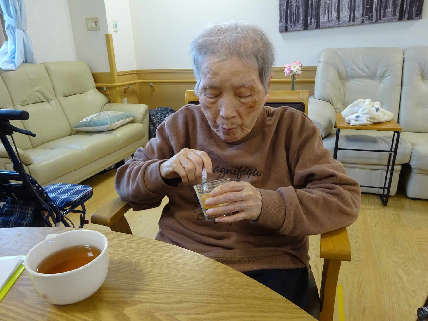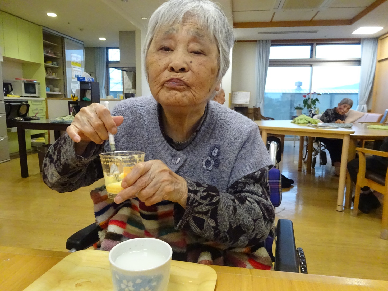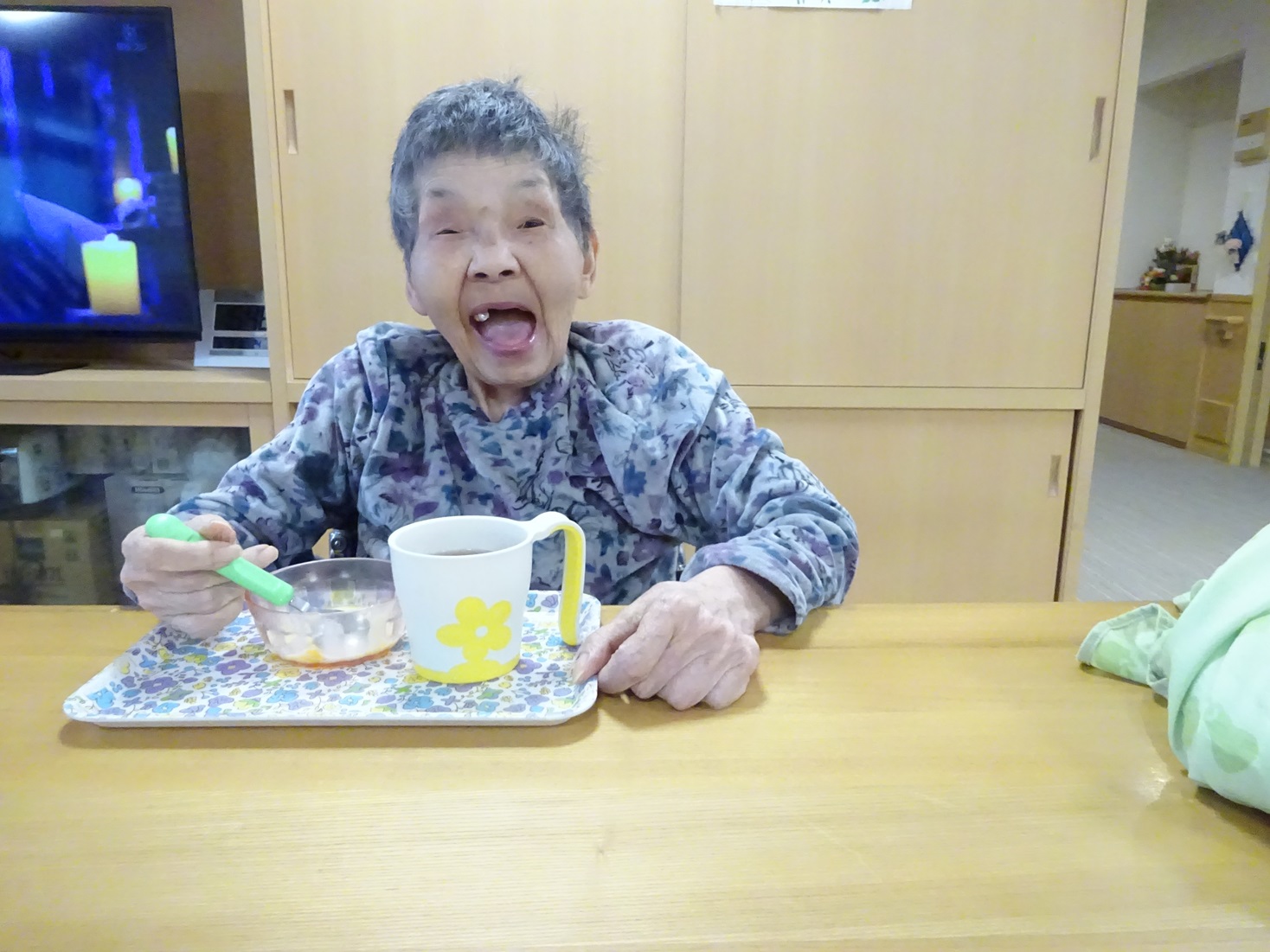 おやつ時、ストロベリー、ブルーベリーのフルーツソースをのせて、利用者様に召しあがって頂きました!!「美味しいわ」と皆さん笑顔で喜んで下さいました。