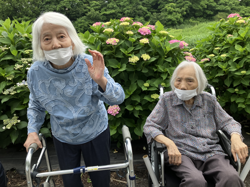 車の中から見る福井の町は以前とはずいぶん変化したようで皆様口々に「変わったの~」とおっしゃっておりました。「昔はこんなんやったの」など話しているうちに到着。紫陽花はまだ3分咲くらいでしたが、緑の生き生きとした景色に皆様 「やっぱりいいの」と。また今度は満開の時に来られるといいですね。