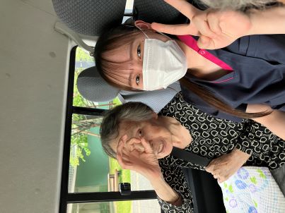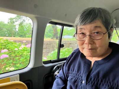 天気は残念ながら雨で車から降りることはできませんでしたが、「高いねぇ」「あじさいはどれ?」「綺麗に咲いているね!」「これも紫陽花か!」と車の中からでも楽しまれている様子が伺えました(*^-^*)足羽山の後は福井駅前をドライブし、動く恐竜や新しくなった駅を見て、昔とは違う福井駅に驚かれていました!