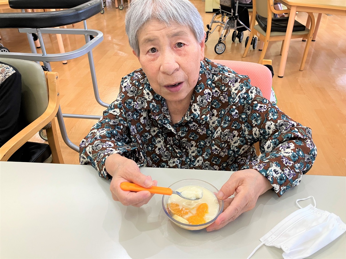 「甘味がない。」、「おかわりないかぁ?」と数名のご利用者様が仰っていましたが、皆さん美味しく召し上がっていました。