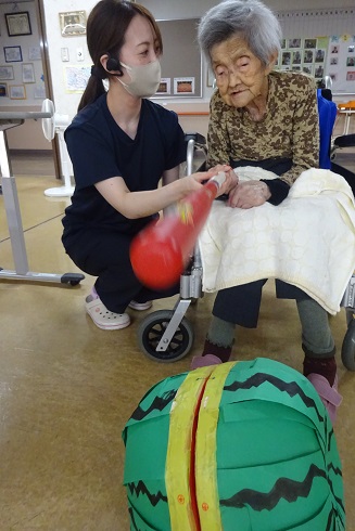北館1階では午後にリハビリや体操、ゲームをして過ごしています。