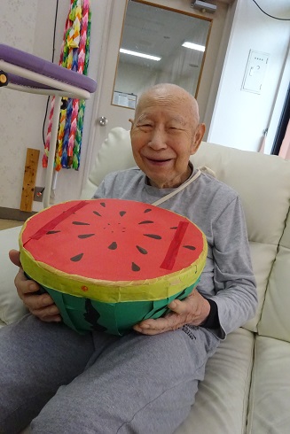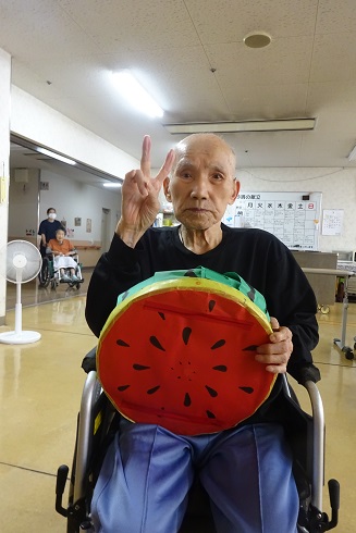 この日は梅雨も明け、夏!!ということですいかゲームを行いました。