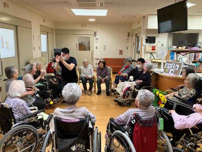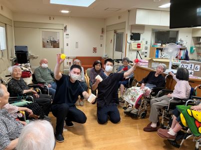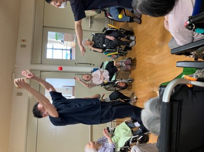 本日はご利用者様と一緒に、手作りの「紙コップけん玉」でレクリエーション!紙コップとカラーボールのシンプルセット!「これで本当に遊べるの?」と最初はちょっと半身半疑なご様子…。ところが始まってみると、真剣な眼差しで全集中…「あれ?入らない!」「あぁ~惜しい!」「入ったー!拍手ちょうだい」とフロア内に笑いと歓声、そして時々「くやしい~!」の叫び声が飛び交いました!