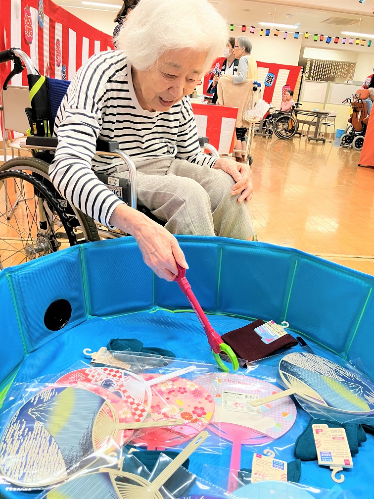 景品すくいのゲームでは、暑い日も多くうちわが人気でした♪お食事も祭りの雰囲気も相まって、あれもこれもとたくさん召し上がられていました!