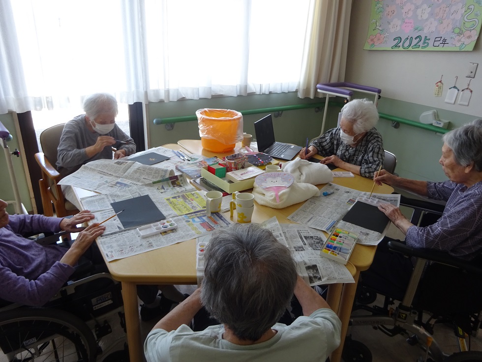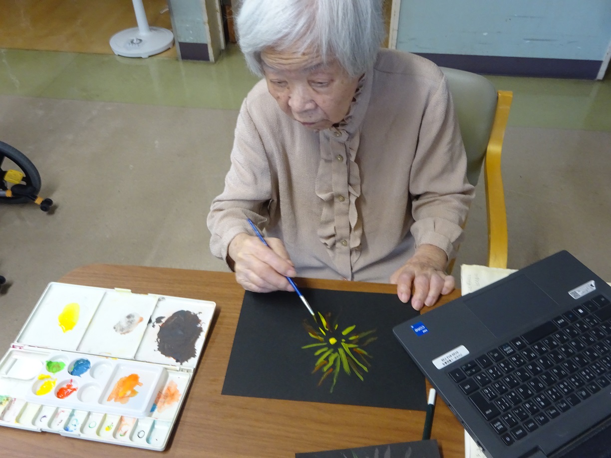 他の方の描いた絵を見て「綺麗ですね」など和気あいあいとしたフロア行事になりました。