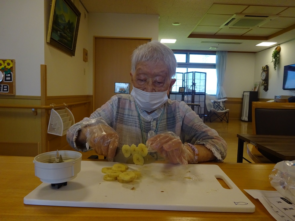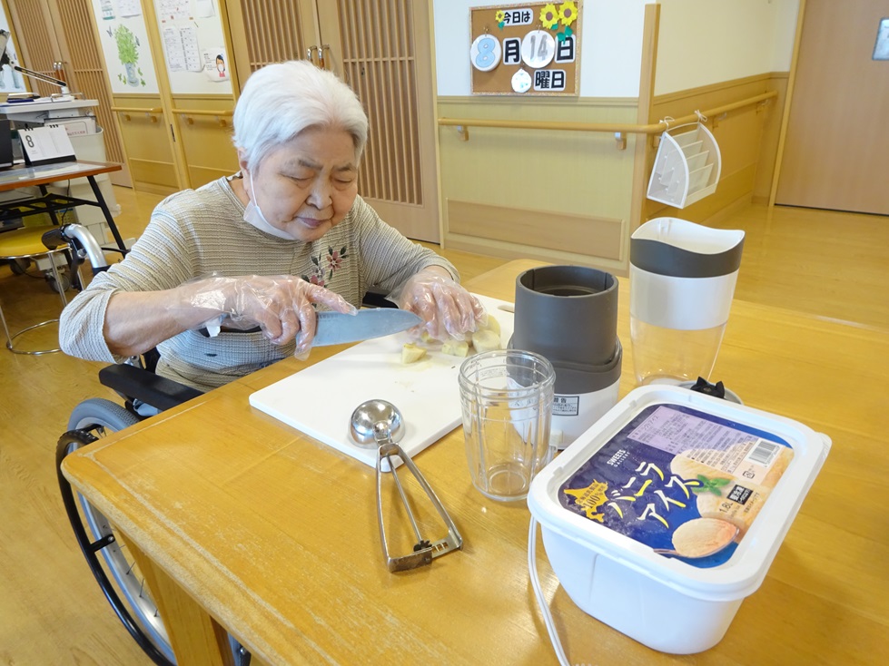 バナナシェイク作りをしました!!食材はバナナ・アイスクリーム・牛乳・氷です(‘ω’)