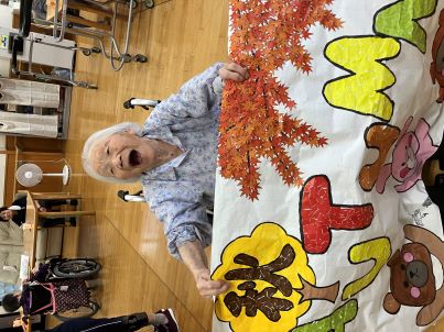 また完成した作品を見て、「上手に出来たねぇ」「紅葉300枚やざ」と利用者様の間でも話が大変盛り上がりました♪今回、秋に向けての作品を作りましたが、まだまだ暑い日が続きますので、皆様も体調に十分に気を付けていきましょう(*^_^*)