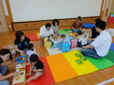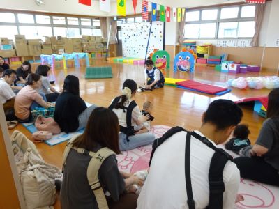 今日は園開放があり、14組のお友だちが遊びに来てくれました。ホールで色々なコーナー遊びを親子で楽しんでいましたよ。たくさん遊べたかな…、楽しかったかな…。にこにこ笑顔をたくさん見せてくれてうれしかったです。また、遊びに来てね。