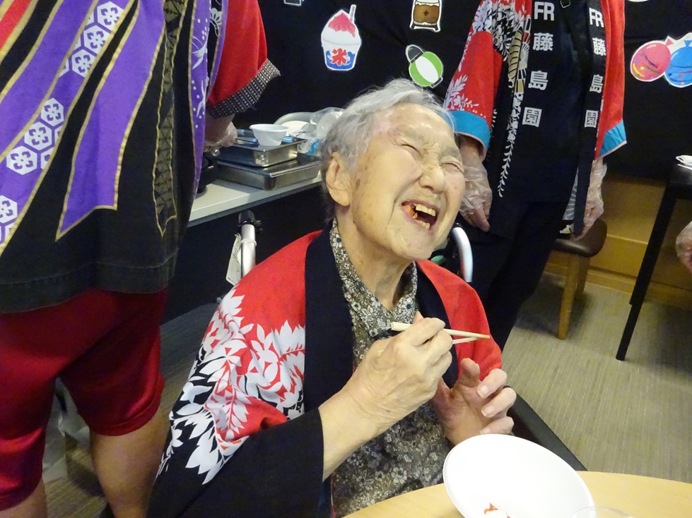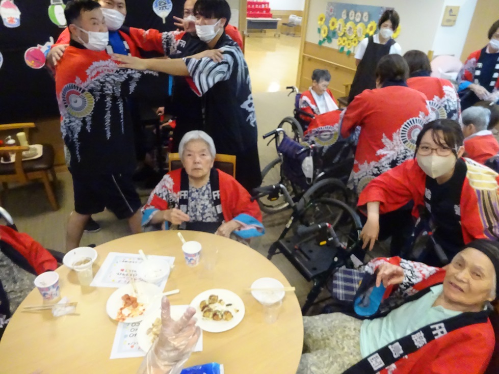 職員の掛け声に合わせて手ぶりを真似したり手拍子をしてくださったりとご利用者様と一緒に職員も楽しめた夏祭りでした(*^^*)♡