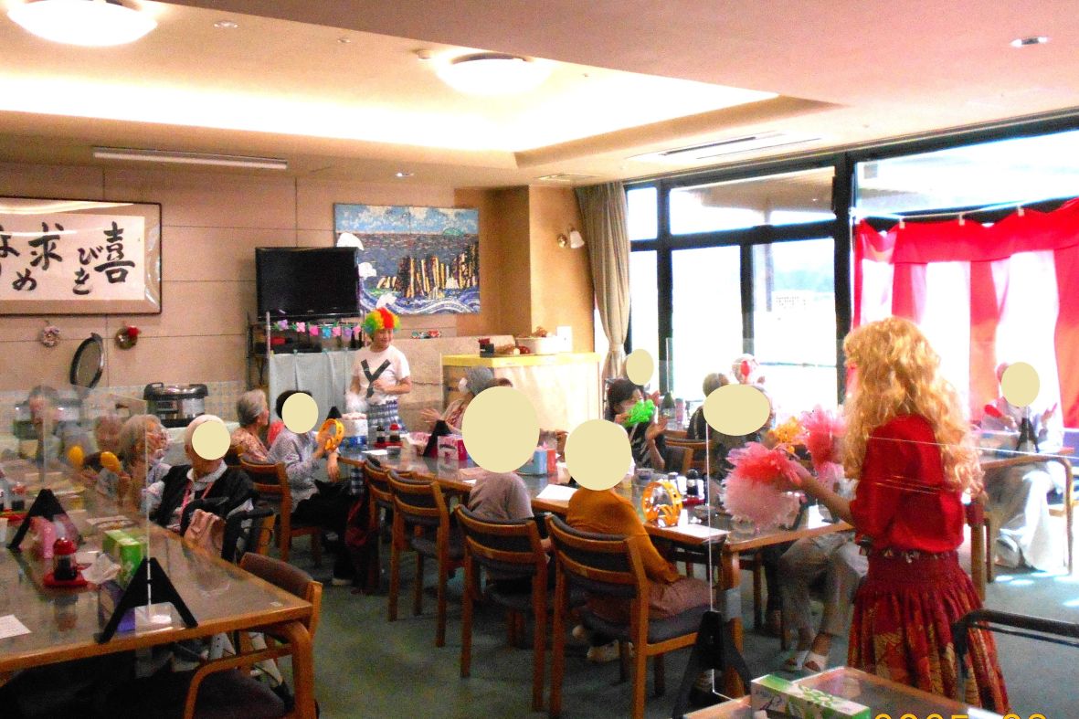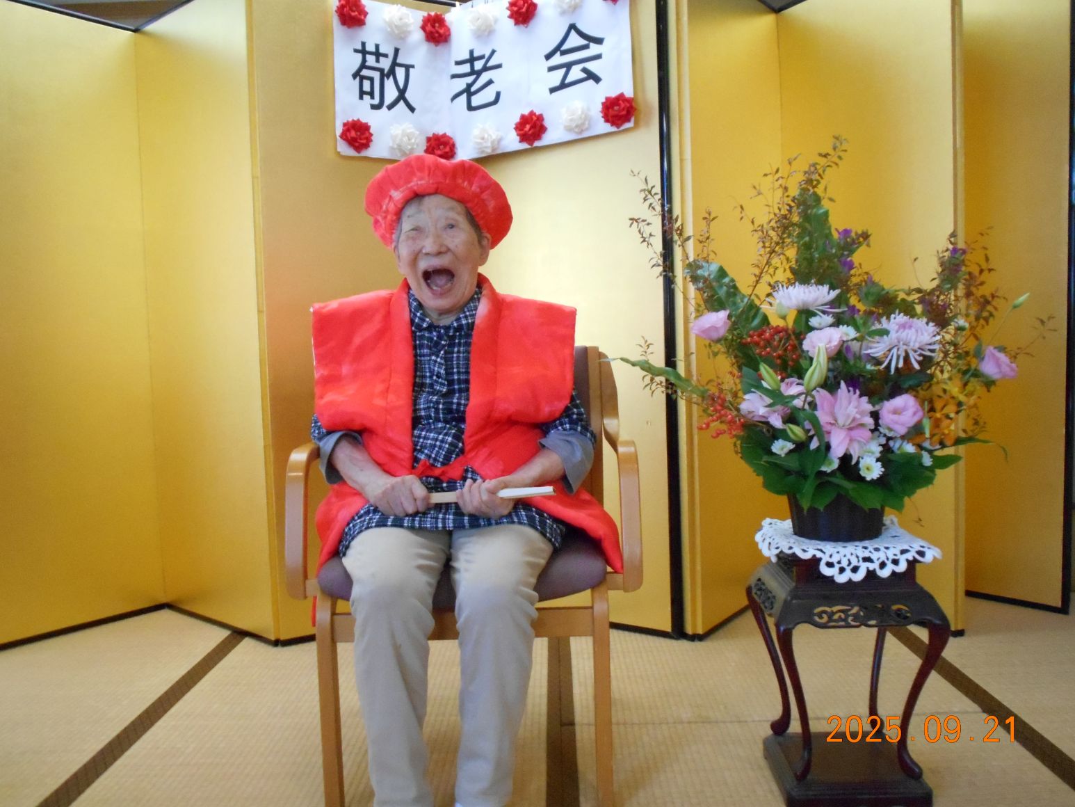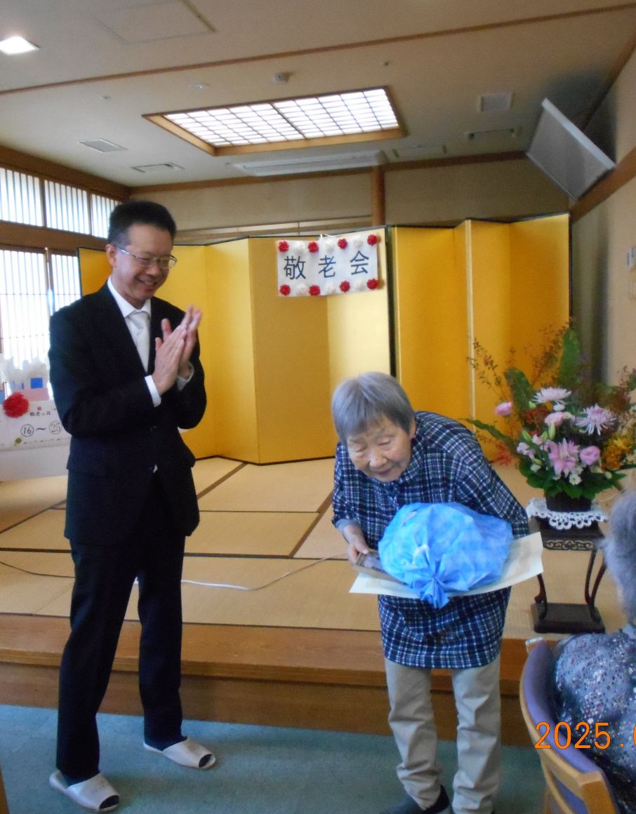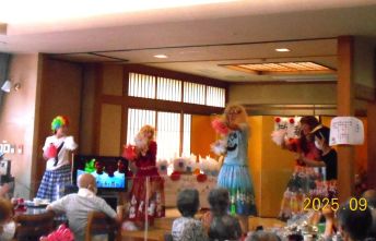 米寿の方のお祝いをしてから、昼食、敬老の日クイズ、職員の出し物と続きました。