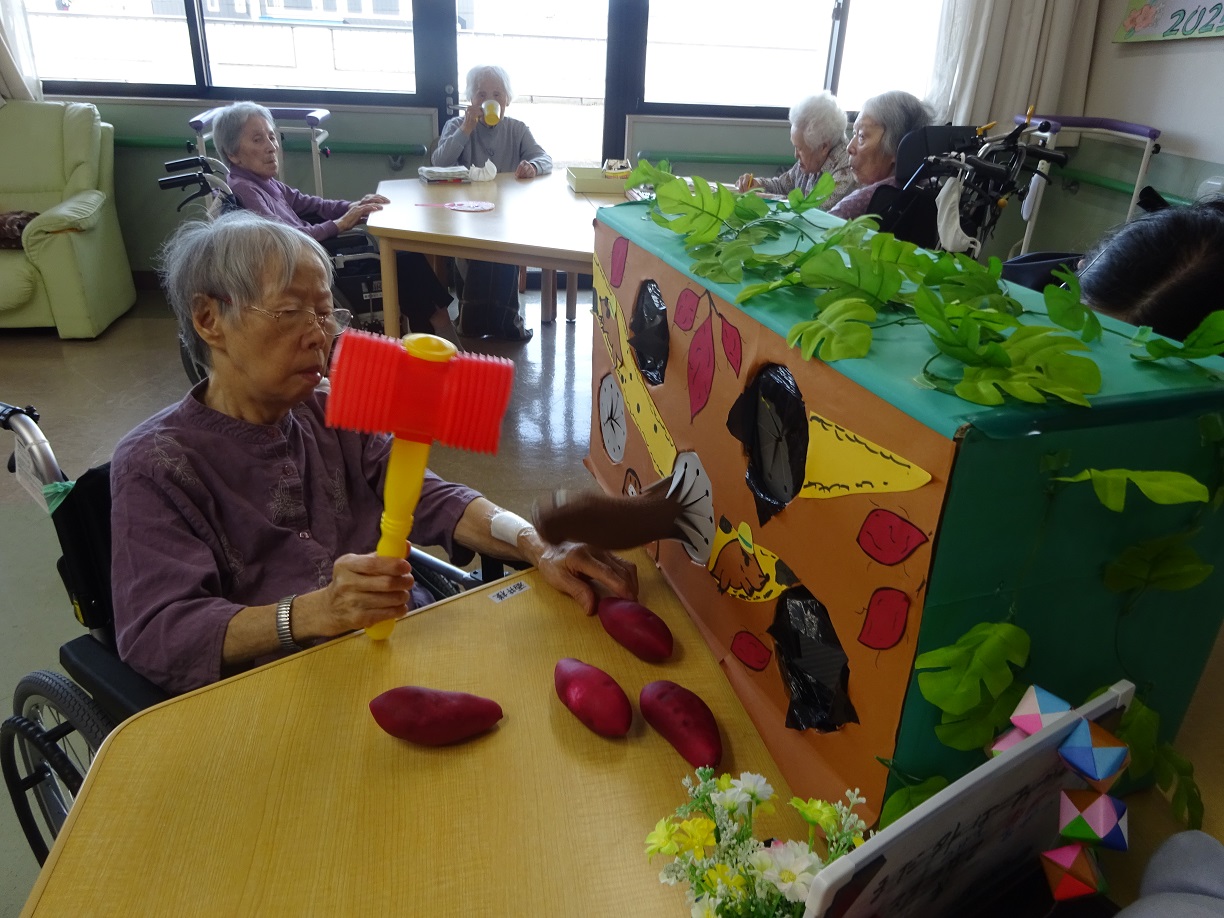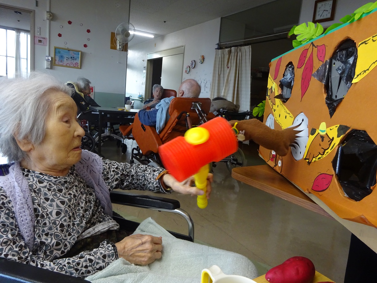 こんにちは、北2階です。今日のレクはモグラたたきを行いました。