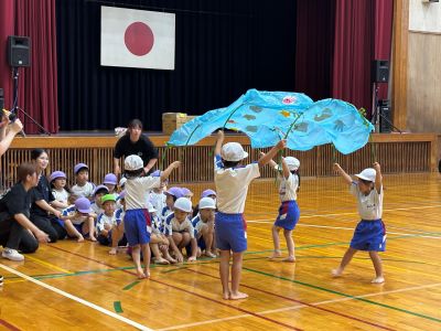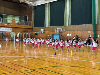 鼓隊やマスゲーム、色々な運動器具を使った競技、リレーなど、みんなで楽しみました。お家の方ともたくさん触れ合って嬉しそうな子どもたち。親子競技はもしかしたらお父さん、お母さんの方が熱くなったかな(・∀・)ニヤニヤ