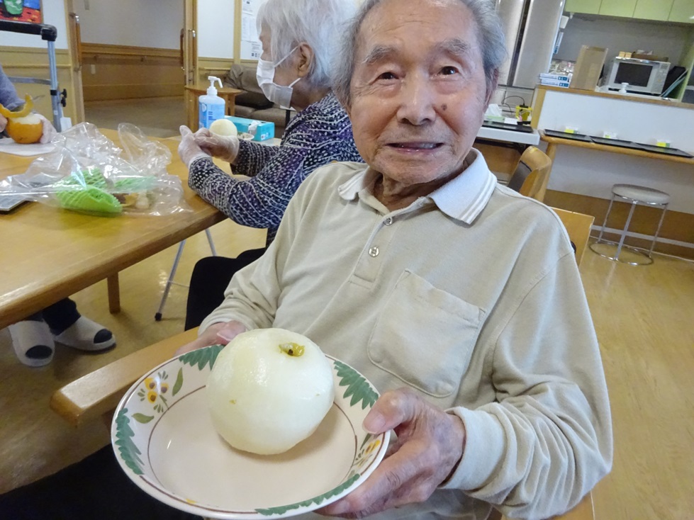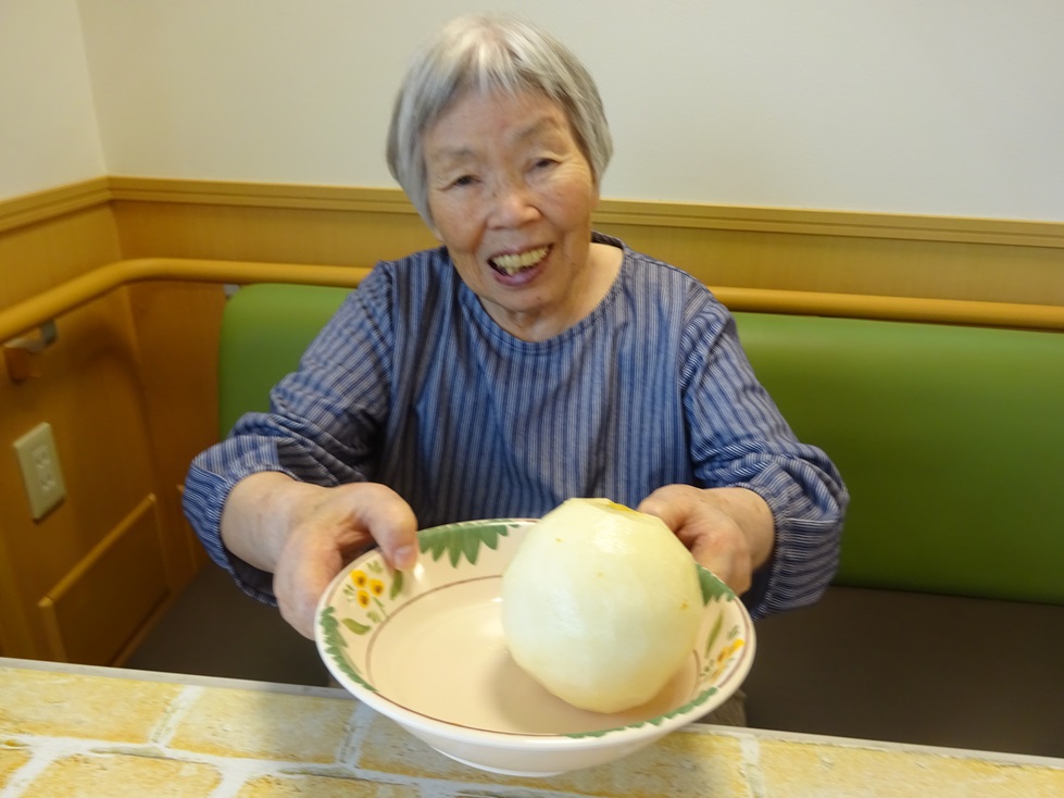 「梨が食べたい」とお声あり梨の皮をむいて頂き皆で食べました(#^.^#)