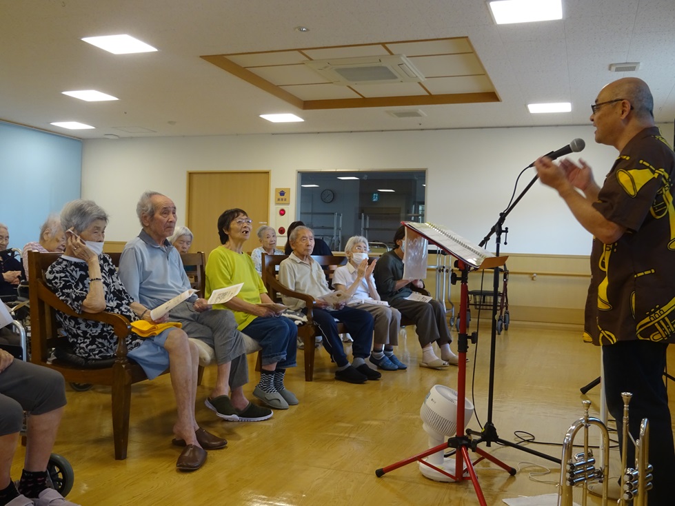 映画音楽に始まり、音楽レクレーションでは大人気韓国アイドルグループBTSや「セプテンバー」(9月ということで)を皆で踊りまくり、汗ばんだ後は「二人は若い」「空に太陽がある限り」「君といつまでも」を口ずさみ、利用者様はいい運動とリフレッシュになったと思います。職員も昔を思い出し踊ってしまいました(笑)また、12月のクリスマス演奏会にてお待ちいたしております!