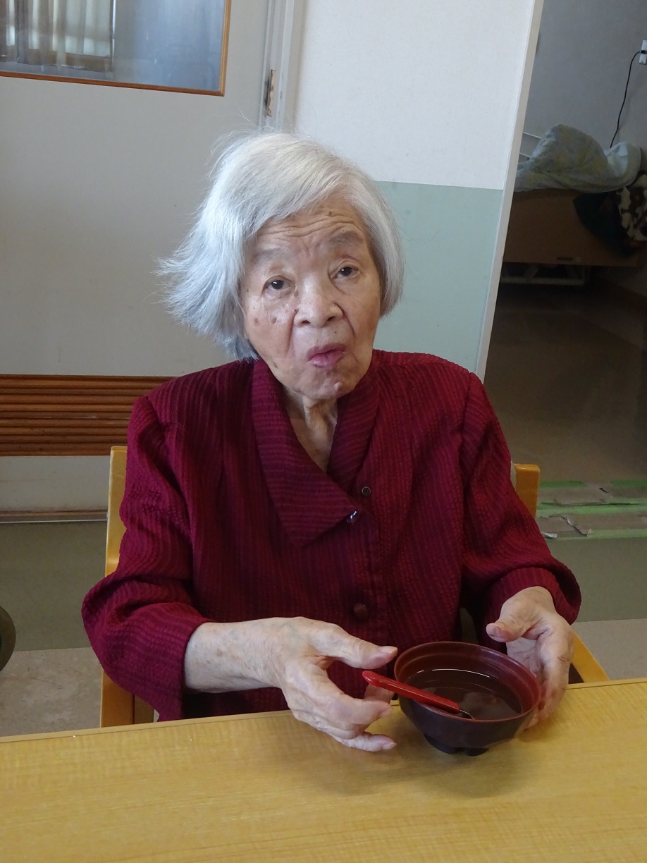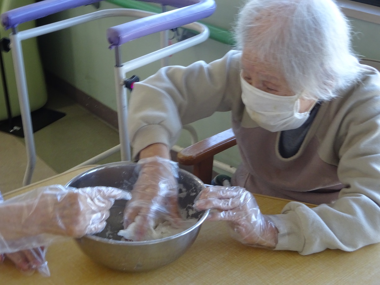 最近肌寒くなってきたためフロア行事にてお汁粉を作りました。皆さんには白玉を作るのは手伝っていただきました。完成したお汁粉は皆さんよほどすぐに食べ終わっておりました。感想を聞くと皆さん笑顔で「美味しかった」と言っていただき嬉しかったです。「また食べたい」と言う声もあるほど好評だったので、機会があったらまた作りたいと思います。