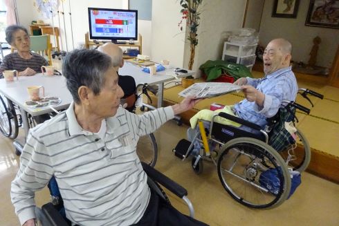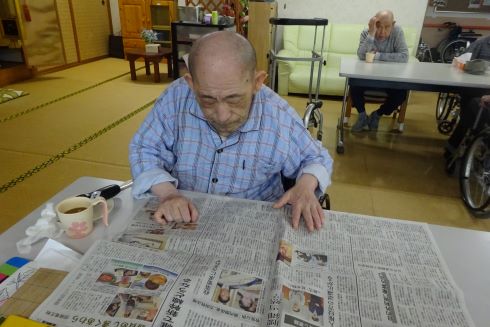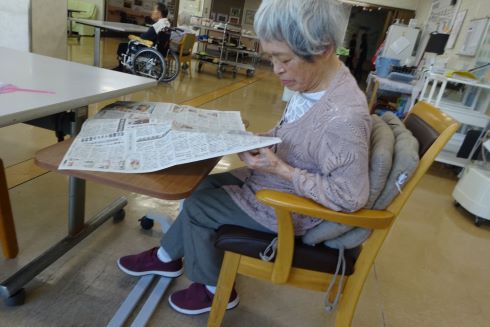 そんな中よく見かける姿は新聞を読む姿です。共有で読まれており、読み終わると次の方に利用者様自ら回して下さいます。