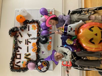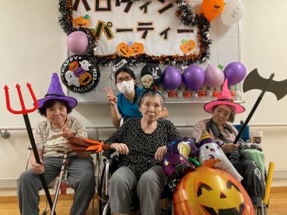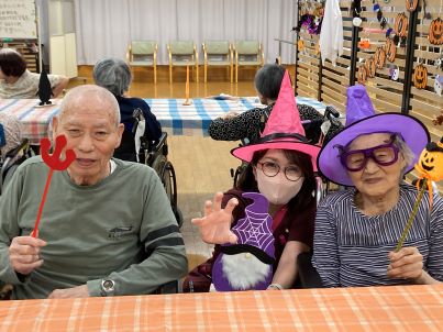また、今月はハロウィンの時期ということで、かわいらしい装飾でいっぱいでした!(^^)「まぁ〜かわいいね!」「昔はこういうのなかったよねぇ!」と話されながら、壁の飾りやかぼちゃのオブジェを眺めてにっこり(´꒳`)!