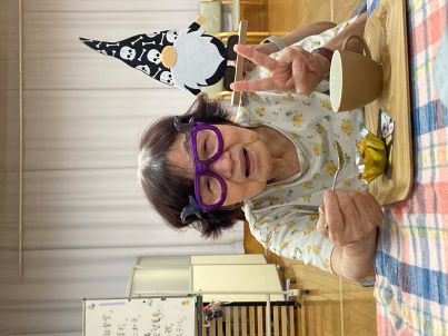 今月はミニ喫茶がありました!(^^)パンプキンスイートを召し上がりながら、「甘くておいしいね!」「かぼちゃの味がしっかりしてる!」と笑顔が広がりました(^^)!「これ、もうひとつ食べたいくらい!」なんて声も聞かれ、皆さんとっても嬉しそうでした(´︶`)!お好きな飲み物を選んで、「私はコーヒー派!」「やっぱりミルクティーが落ち着くわ〜」と、思い思いのティータイムを楽しまれていました!テーブルからは笑い声があふれ、穏やかで温かい時間が流れていました(^^)♪