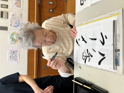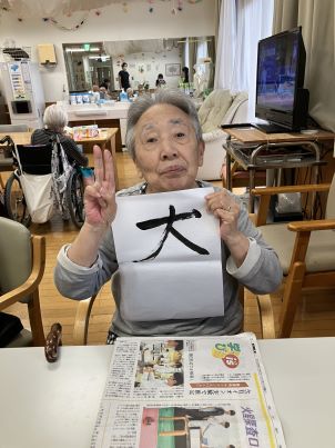 本日はみんなで習字を行いました!「久しぶりに筆を持ったわ〜!」「うまく書けるかなぁ!」と少し緊張しながらも、いざ筆を取ると皆さん真剣な表情に!