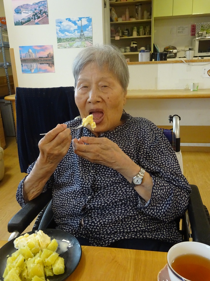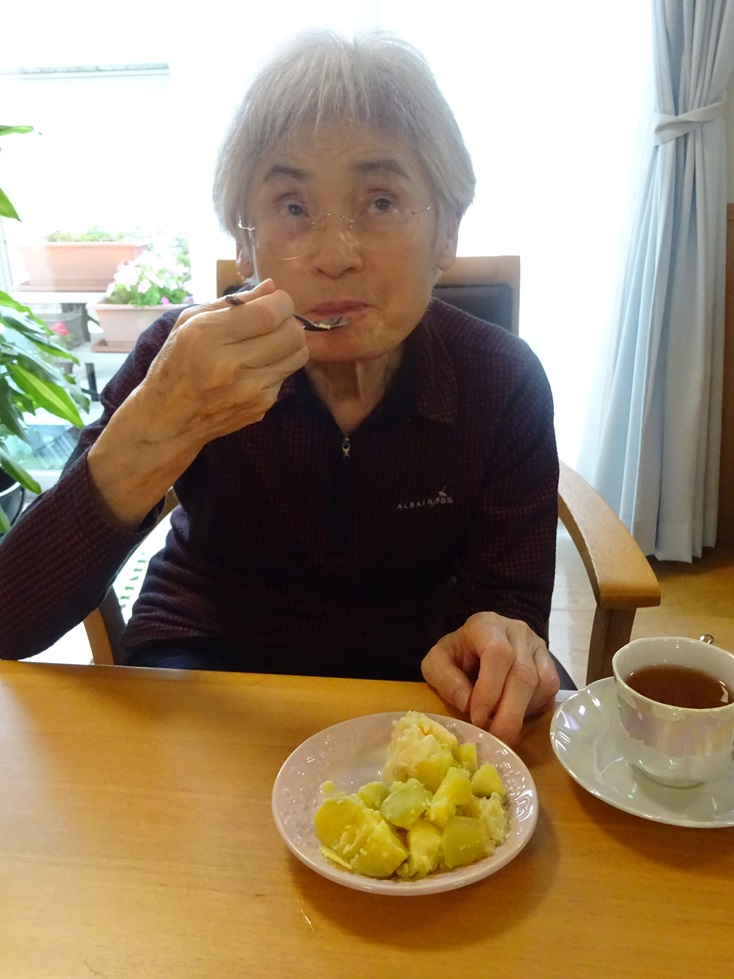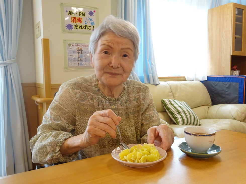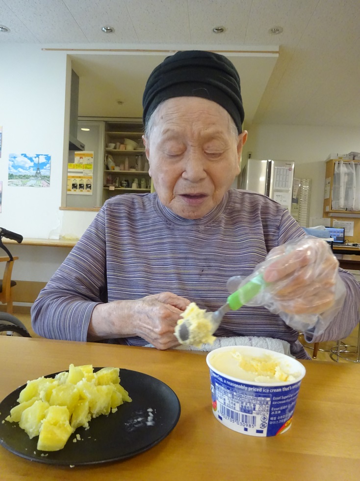 そよかぜホーム東3階ユニットです!今月は秋の味覚であるサツマイモを蒸した物ととアイスを一緒に食べました(*’ω’*)