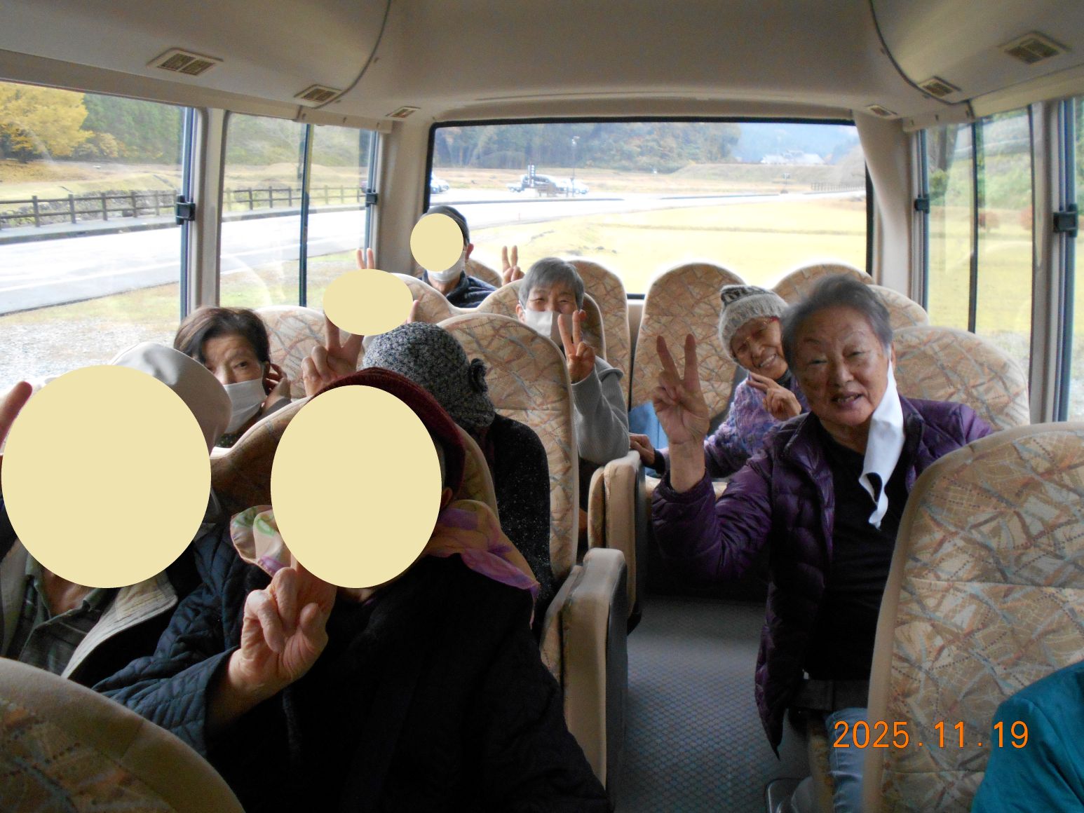 朝からとても寒い日となりましたのでバスの中からの
