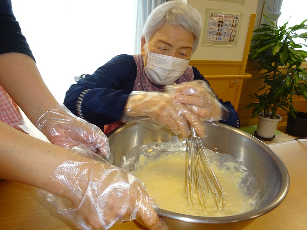 そよかぜホーム東3階ユニットです!たまには出来立てほやほやの物が食べたいとご希望を頂き、ホットケーキをご利用者様と一緒に作りました(≧▽≦)