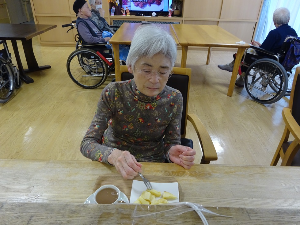 ホットプレートを見ながら焼けていく様子を見てご利用者様から「いいにおいがする」「美味しそうや」等言われワクワクしてる様子でした(*^-^*)