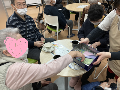 今年最後の懇談会&喫茶を行いました。クリスマス抽選会も一緒に開催ということで、今年一番?皆様集ってくださいました。盛り上がりは何といっても抽選会。一応外れなしのくじですが、一等が当たった方はとってもうれしそうでした。来年もいい年となりますように・・