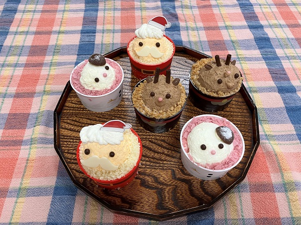 サンタ、雪だるま、トナカイの3種類からお好きなケーキを皆さんに選んでいただきました。好きな物を選べるということで、