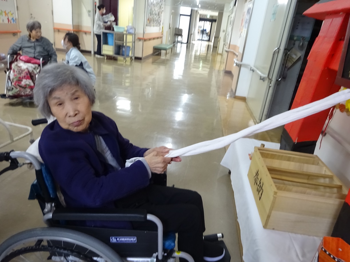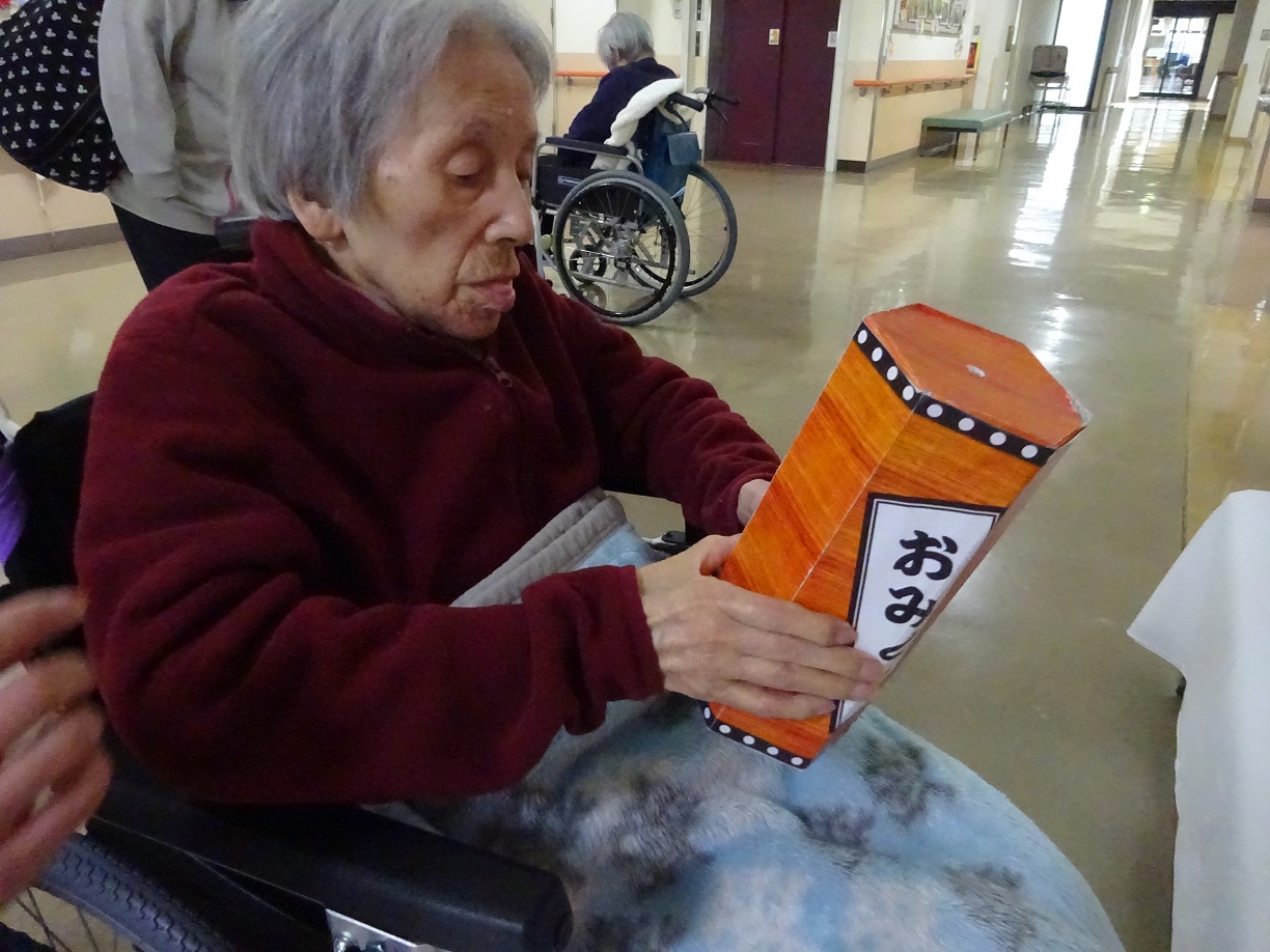 新年初めてのフロア行事は初笑い会ということで、皆さんには正月と言えばなにが出てくるのか聞きました。お餅、お年玉、おせち料理など様々なものが出てきました。