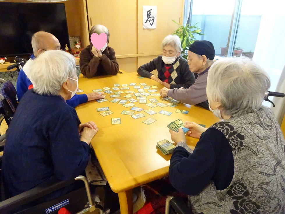 お正月ということで、みなさんで羽子板とかるた大会を行いました。