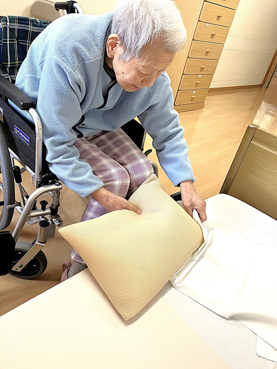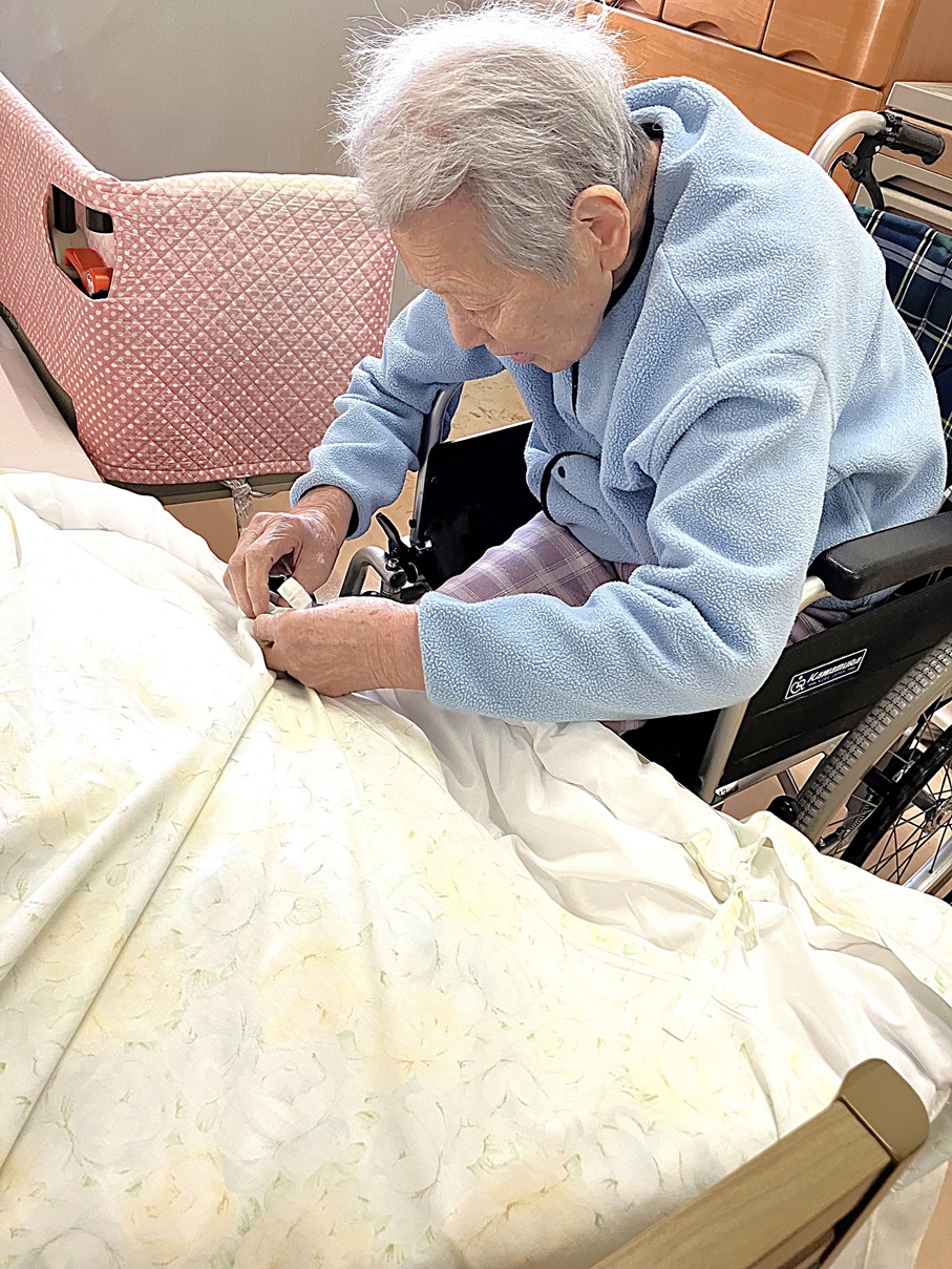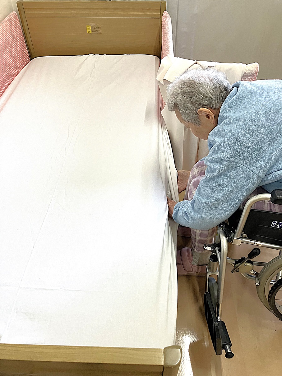 定期的に行うシーツ交換のお手伝いを利用者様と行いました。