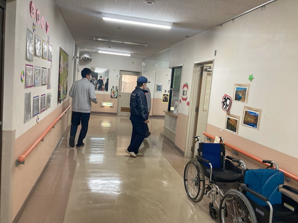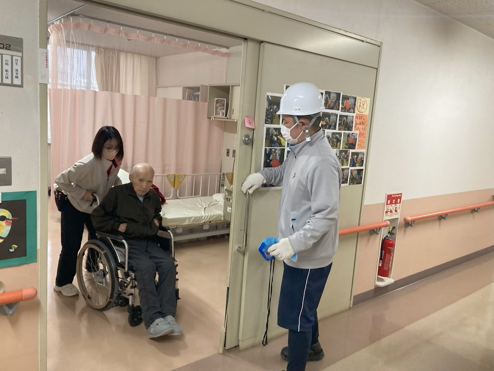 藤島園の特養では年に2回、火災を想定した避難訓練を行っています。