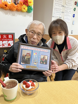 こんにちは、ケアハウス特定です。2月生まれの利用者様の誕生日会をしました。