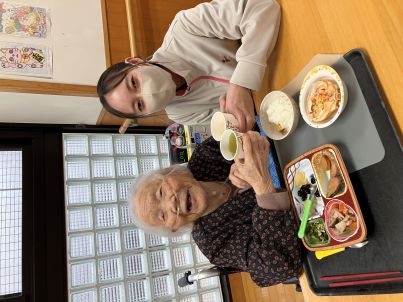 職員の「それでは、乾杯!」の掛け声に合わせて、「今年もよろしくね」「元気でいようね」と、思い思いの言葉を交わしながら、皆さまで乾杯しました ( ^^)/□☆□\(^^ )