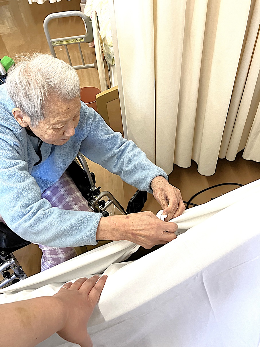 定期的に行うシーツ交換のお手伝いを利用者様と行いました。