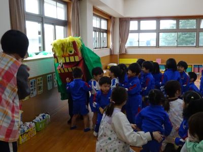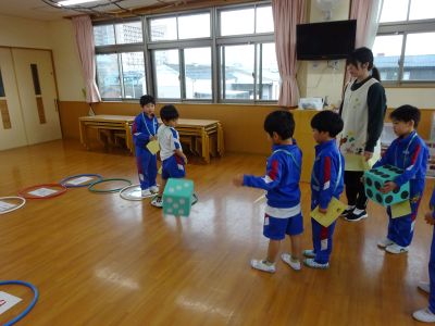 今日は子ども新年会を行いました。だるまつみ、福笑い、すごろく、おみくじ、絵馬、写真コーナーでお正月遊びを楽しみました。絵馬に今年の目標(お願い事!?)を描いて大きな鳥居に飾りました。今年も素敵な一年になるといいな~。