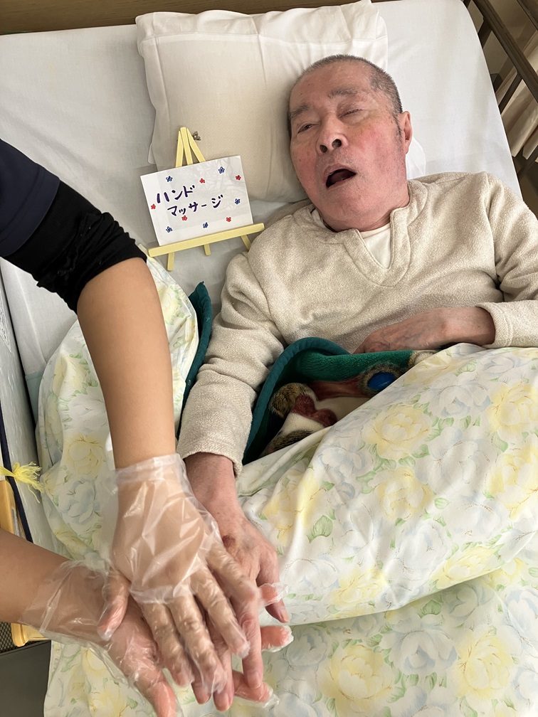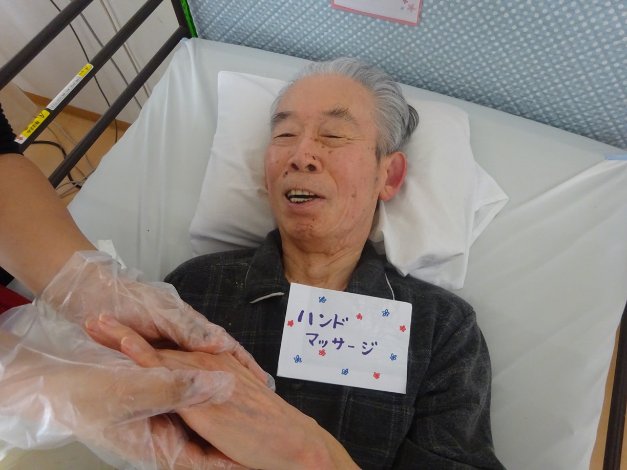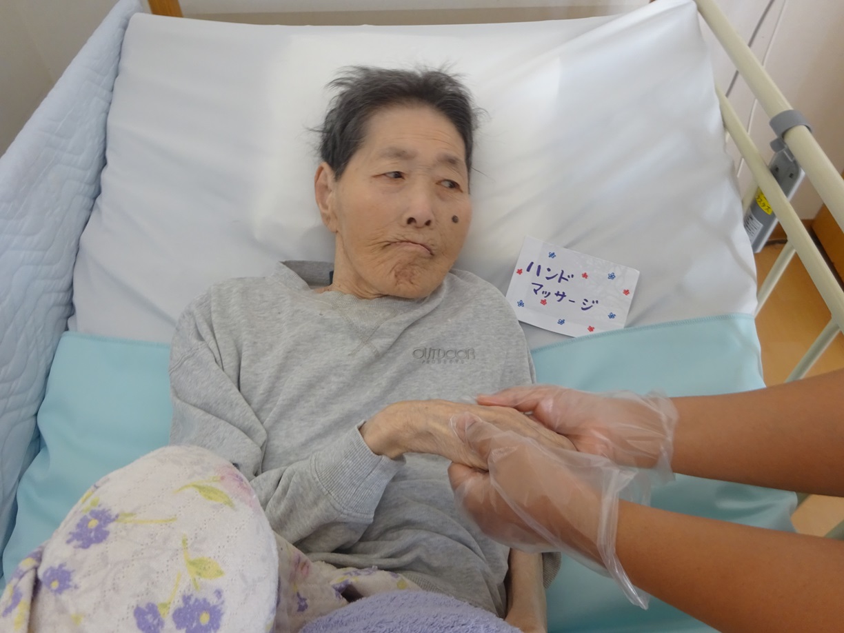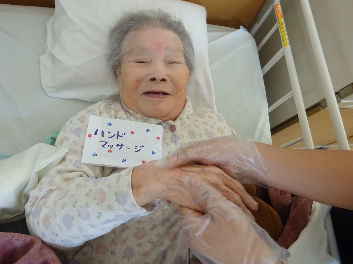 手が乾燥する時期のため、ハンドマッサージで乾燥が少しでも無くなるように「優しく、丁寧に」行いました。