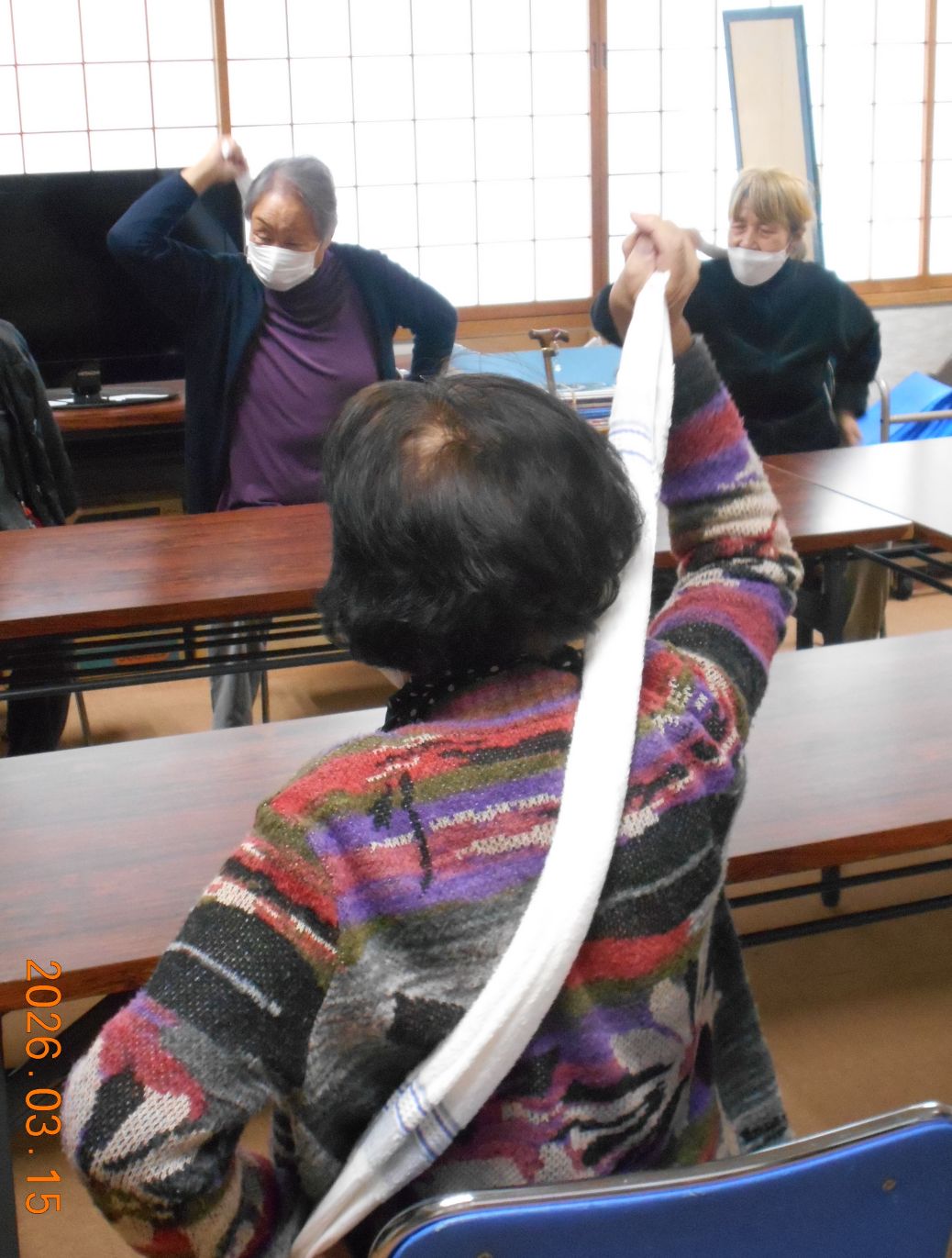 その次はタオル体操です。無理のない範囲で手足を動かしてすっきりしました!!