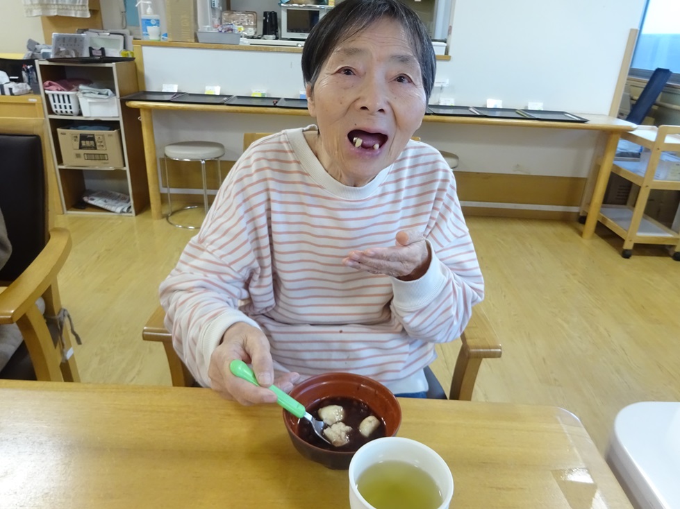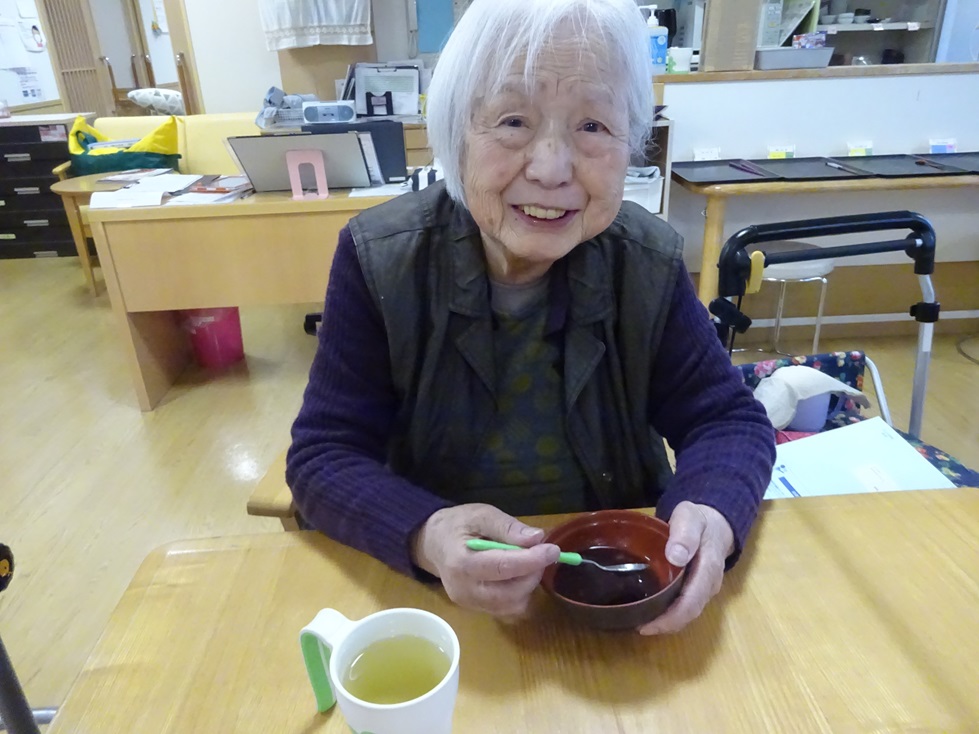 今、食べてみたいものは?とご利用者の方にお聞きしたところ、ぜんざいと多数のご意見を頂き、ぜんざい作りに決定しました(*^^)v