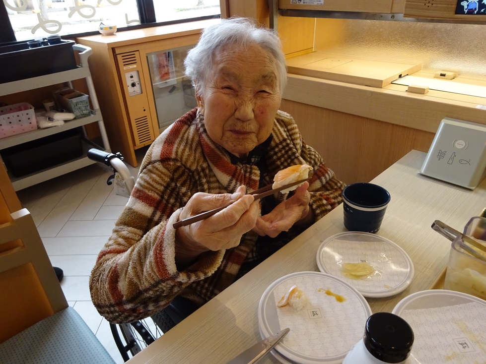 普段あまり食べないご利用者様も大好きなお寿司はたくさん食べて、大満足されていました(^^)/