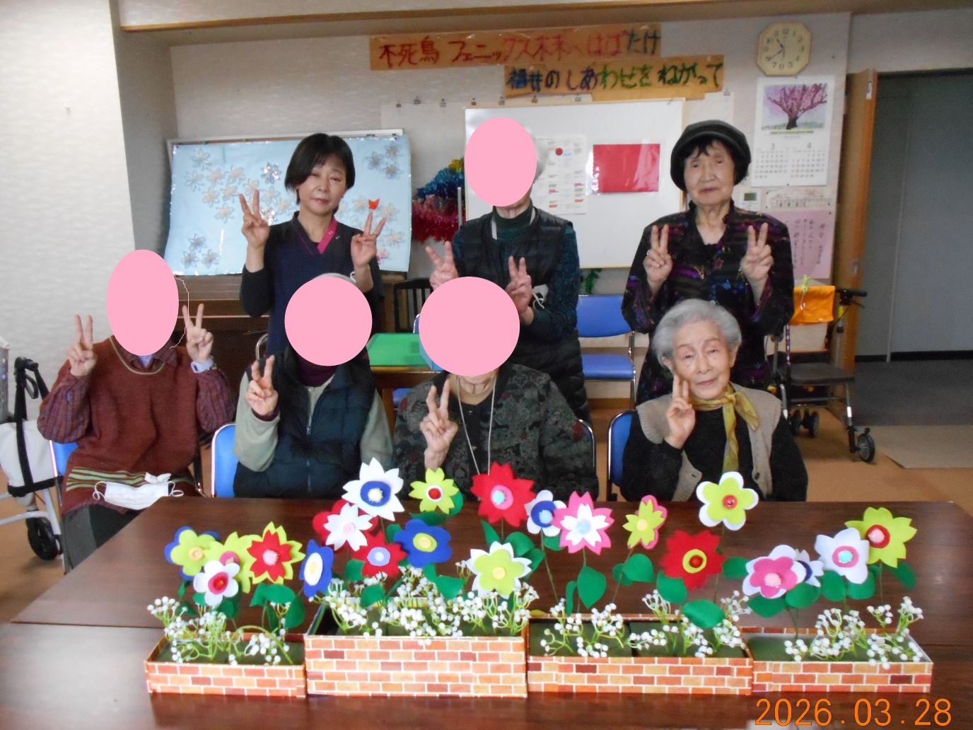 少しずつ制作してきたフエルトのお花を花壇に植えました。「かわいくなったね」「色がいいの~」などの声が聞こえてきました♪