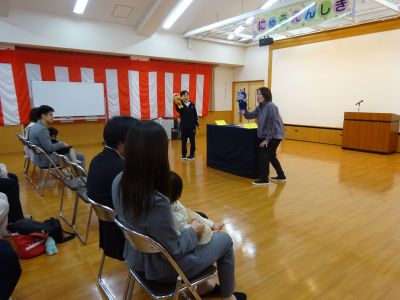 途中でみんなの大好きなアンパンマンが登場!一気に会場の雰囲気も和やかになりました。アンパンマンと一緒に手遊びを楽しんだり、ジャンボリーミッキーで体をほぐしたり…。可愛い笑顔がたくさん見られました。