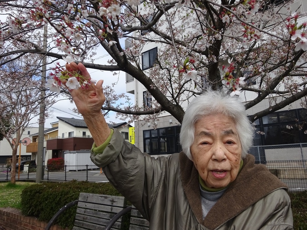 近くの公園の桜が満開になり、お散歩がてらお花見に行って来ました。手に届くところに桜の花があり、利用者様も「綺麗ね~」と言って優しく桜の花を触っておられました。