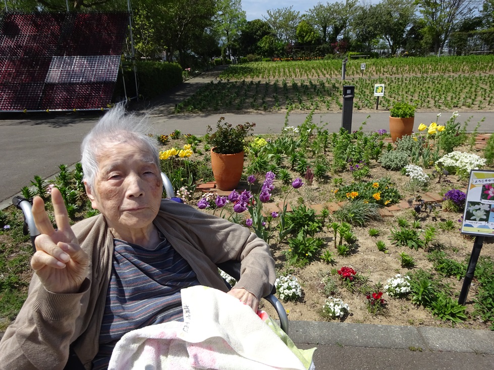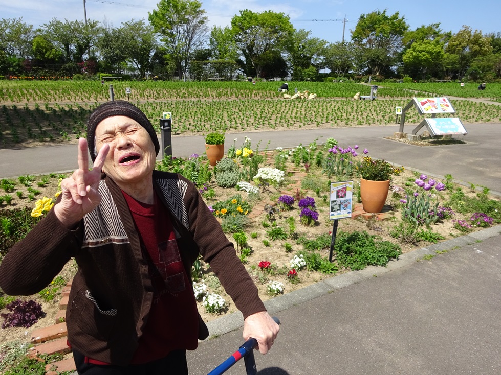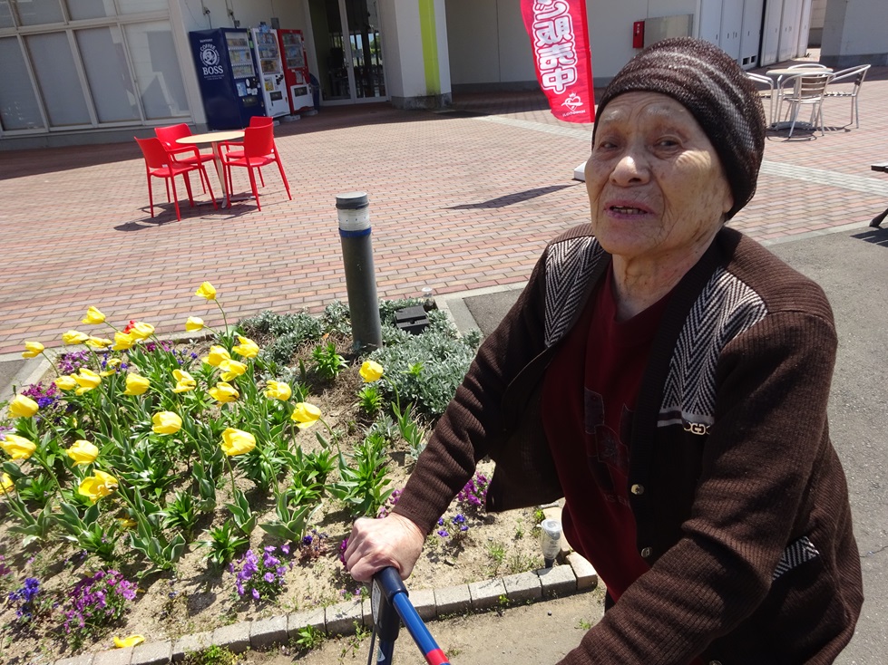「今日はいい天気やでお花日和やね~」「久しぶりに外出たで嬉しいわ~」と