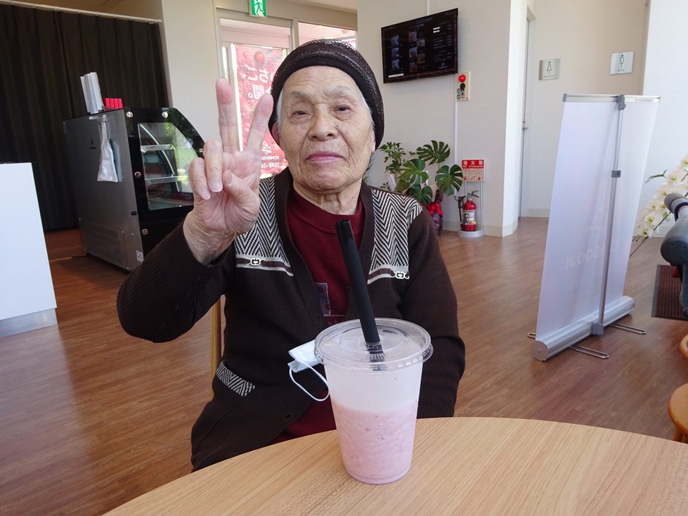 また、ゆりの里公園内にあるカフェに行き、いちごのスムージーを飲みました(/・ω・)/